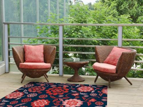 Kess InHouse Nicole Ketchum "Cherry Floral Midnight" Indoor/Outdoor Floor Mat, 4-Feet by 5-Feet