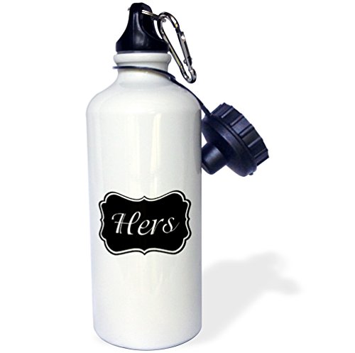 3dRose Hers Part of His and Hers Pair for A Romantic Couple Black and White Retro Vintage Label for Her Sports Water Bottle, 21 oz, White