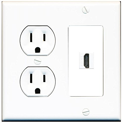 RiteAV (2 Gang Decorative) 15 Amp Round Power Outlet HDMI TV Wall Plate White