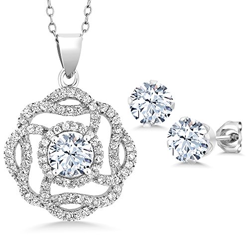 -. Title : 6.56 Ct Round White Zirconia 925 Sterling Silver Pendant Earrings Set