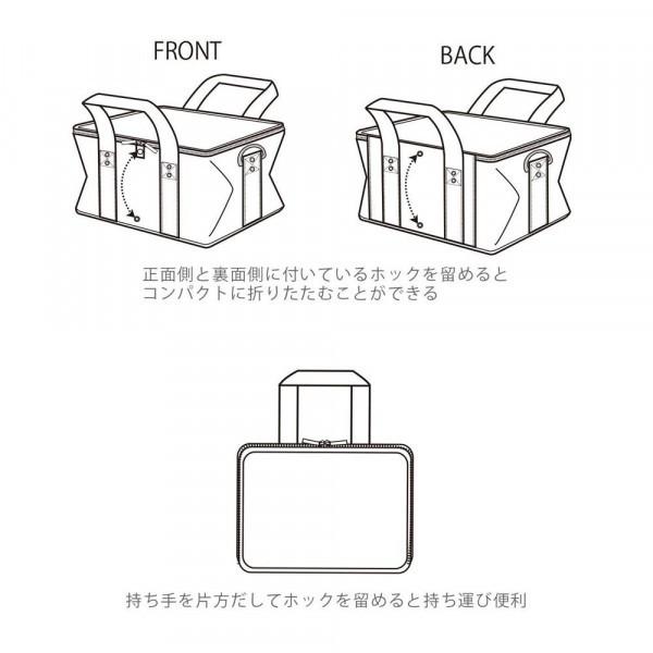 | 仕様 | 機能:保冷保温仕様 開閉:ダブルファスナー仕様 収納量目安:1500mlペットボトル約9本 内側仕様:ふた内側と側面にメッシュポケット付き 底面仕様:5ヶ所足付 持ち手:パッド付、長さ調節可能 |