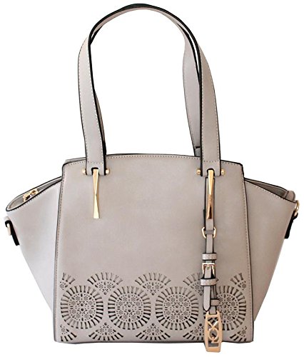 Aolisi brand 2-in-1 shoulder tote and crossbody bag. Designed for work and everyday use. Beautiful laser cut flower design. A high fashion bag set easily matches with your outfit for all occasions.