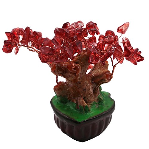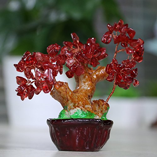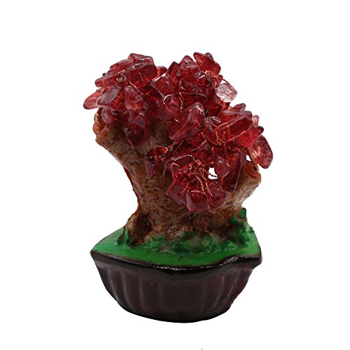 Omonic 7 Inch Feng Shui Red Quartz GemStone FengShui Money Tree Natural Garnet Crystal Office Room Good Luck Fortune Decoration