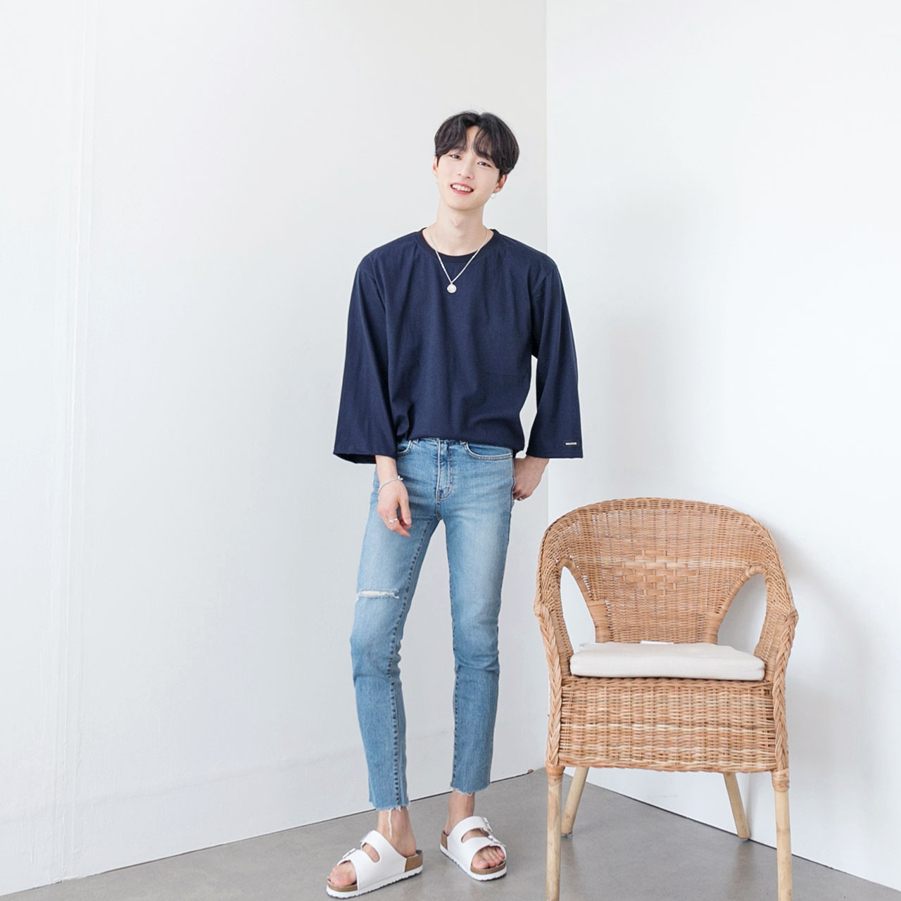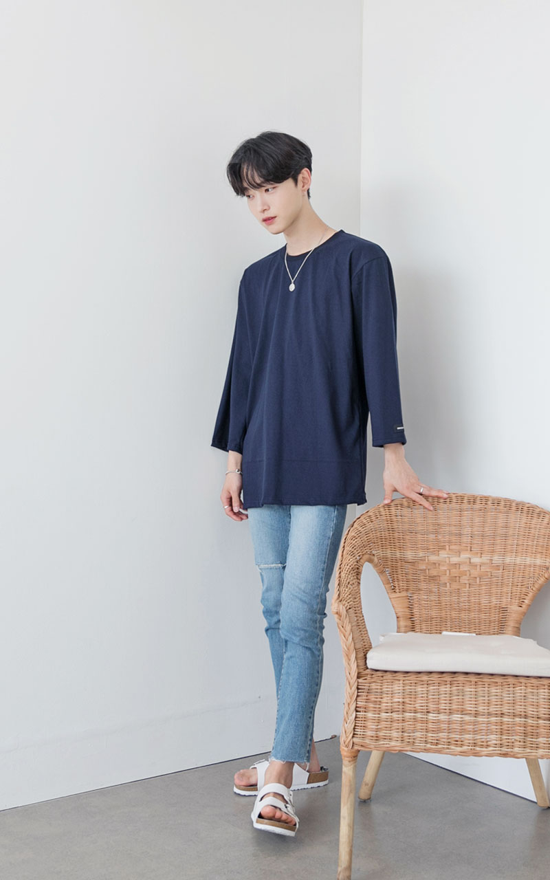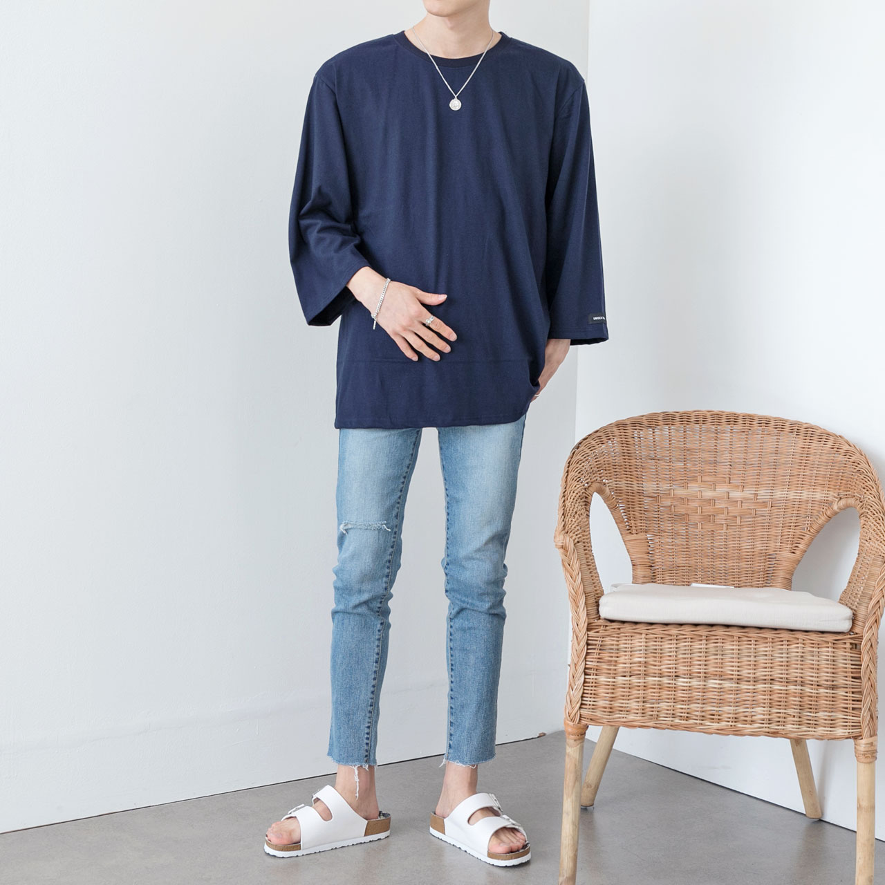 멋스러운 오버핏으로 내츄럴한 무드의 7부티셔츠 입니다.