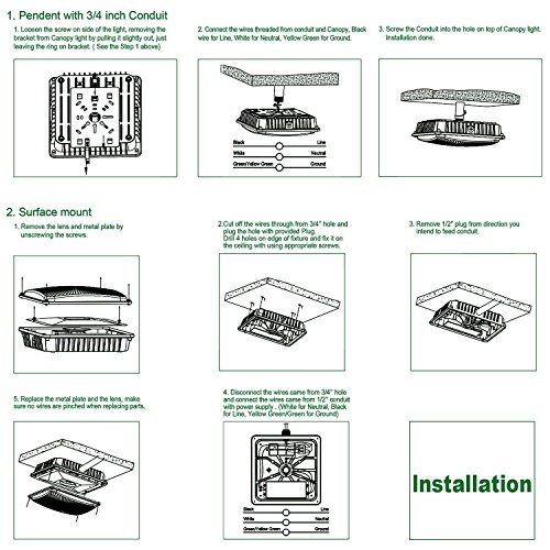 Hykolity 45W LED Canopy Light Commerical Grade Weatherproof Outdoor High Bay Balcony Carport Driveway Ceiling Light [175W-200W HID/HPS Equivalent] 4200lm 5000K DLC Qualified
