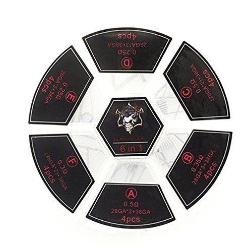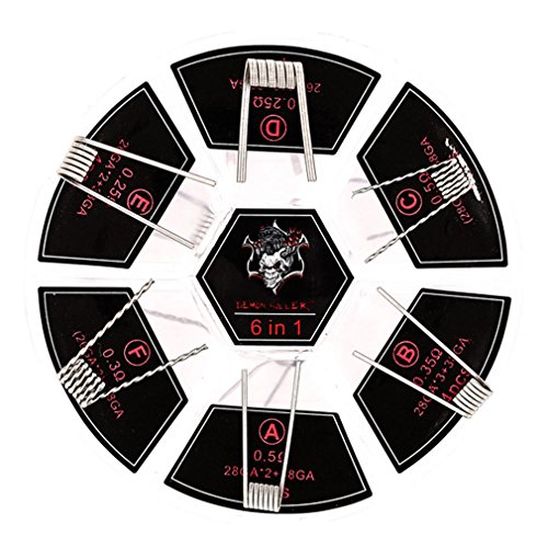 Demon Killer 6 in 1 Pre-built Coils Kit Heating Wires with 24 Pcs 316L Stainless Steel Prebuilt Coils(0.25ohm 0.3ohm 0.35ohm 0.5 ohm)