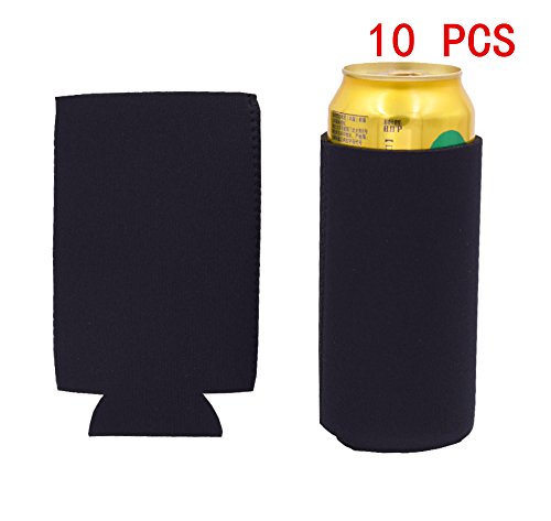 Lucky Life 16.9OZ Collapsible Neoprene Beer Can Beverage Insulator / Can Holder/Can Cooler/ Can Sleeve/Can Coolies for Cola/Beer/Soda- 10 pack (Black))