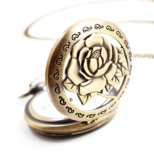 -. Title : Flower Series Steampunk Quartz Pocket Watch Fob Retro Half Hunter Scale Pendant Pocket Watches Chain & Necklace for Women