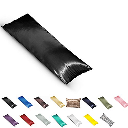 TAOSON Silky Soft Satin Body Pillow Cover Pillowcase Pillow Protector Cushion Cover with Zippers (21"x54",Black)
