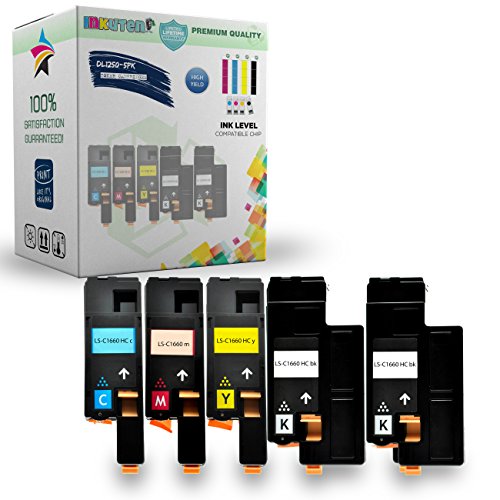 5PK Dell 1660w Toner Cartridges - 2 Black, 1 Cyan, 1 Yellow, 1 Magenta - Compatible - For Color Laser C1660w, C1660 & C1660cnw by INKUTEN ©