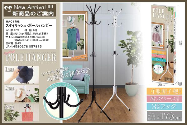 ●洋服、バッグ、帽子などおしゃれにかけられる。おしゃれにかけられるポールハンガーです。
