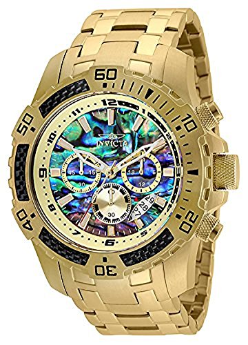 -. Title : Invicta Men's 50mm Pro Diver Scuba Quartz Chronograph Carbon Fiber Bezel Abalone Dial Bracelet Watch