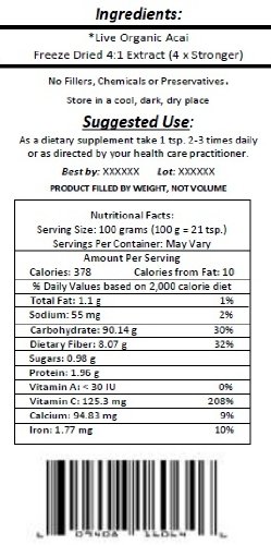 Studio : BP Investments Publisher : BP Investments Binding : Misc. Product Description Our premium natural Acai Berry Powder is loaded with antioxidants, bioflavonoids, amino acids, polyphenols, trace minerals plus omega 6 and omega 9 fatty acids which are rarely found in fruit. Acai Berries may possess an unmatched ability to absorb injurious free radicals that attack the body and contribute to the aging process. Our live organic Acai Berry 4:1 Extract Concentrate is the most potent form of Acai Berry available. This product is 100% versatile and can be mixed with smoothies, yogurt, oatmeal, juice, cereal, ice cream and so much more. 0