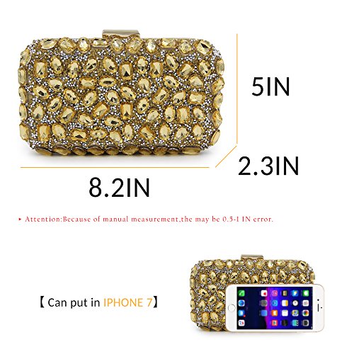 -. Feature : { Occasion}: As Daily clutch to meetings with friends, family reunion, dating and other daily occasion. As evening clutch to Banquets, prom, cocktail parties and other special occasions. / { Feature }: Various shape pure beaded with mini rhinestones decorated in the surface, both front and the back side is the same color. / { Material }: The entire structure is made of superior hardware frame construction, the lining is made from satin, which feels soft and comfortable when you take it. / { Flexibility }: The detachable chain-strap for you to choose to be clutched by hand or hung on shoulders. / { Capacity }: 8.3" x 5" x 2.4"( L x H x W ), nice size which can fits in iPhone 7 plus and left some spaces to add small things.