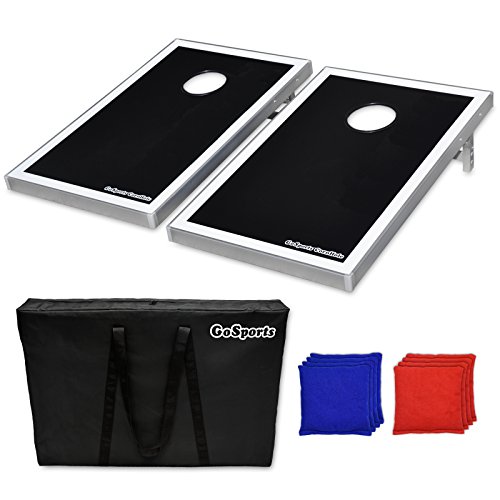 GoSports CornHole Bean Bag Toss Game Set - Superior Aluminum Frame (American Flag, Football and Black designs)