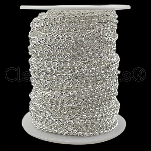 CleverDelights Curb Chain Spool - 3x5mm Link - Shiny Silver Color - 100 Feet - Bulk Jewelry Chain Roll