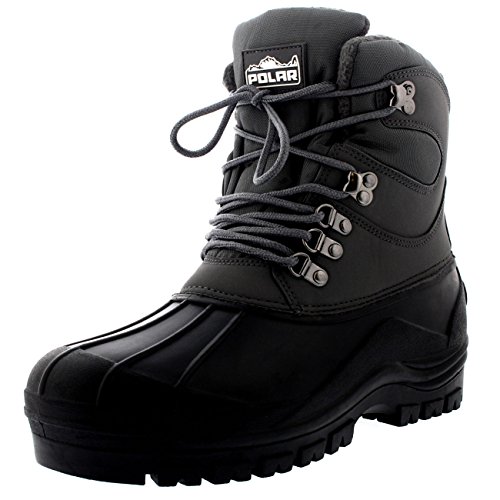 -. Binding : Apparel -. Brand : Polar -. Department : mens -. Feature : Short nylon snow boots, Overlay Design / Rustproof speed-lacing system / Thick durable rubber outsole with deep tread, suitable for all terrain / Fully fur lined interior, Padded Cuff & Tongue / Available in a palette of fashionable shades -. ProductGroup : Shoes -. ProductTypeName : SHOES -. Title : Polar Mens Short Nylon Mesh With Overlay Duck Waterproof Sole Lace Up Winter Snow Boots