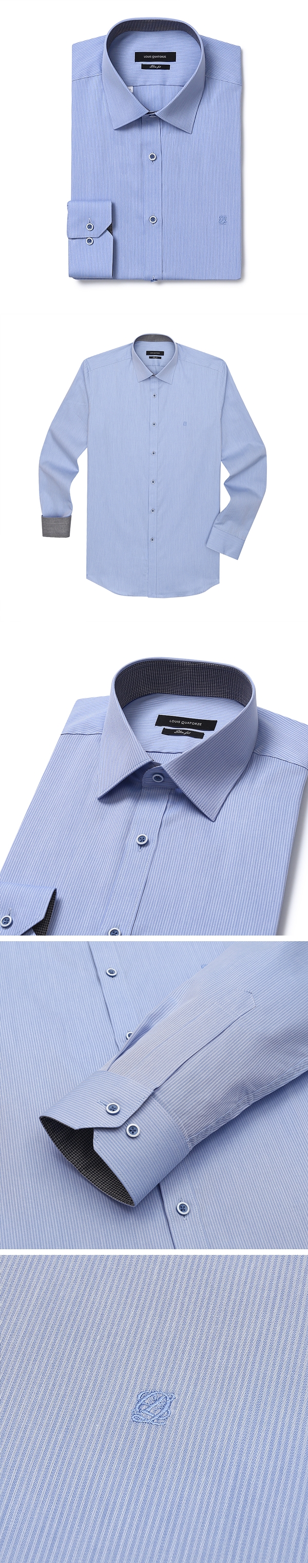 블루 도비짜임 긴팔슬림셔츠