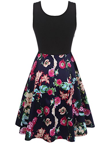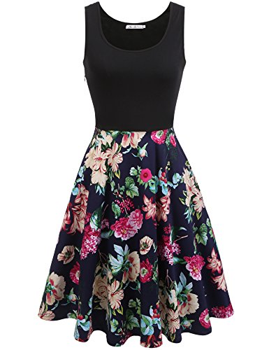 FEATURES: The Macr&Steve A-line dress is made up with two parts. Bottom with Vintage Floral pattern, two pockets, zipper on the side. Top with cotton, strechy and breathable.