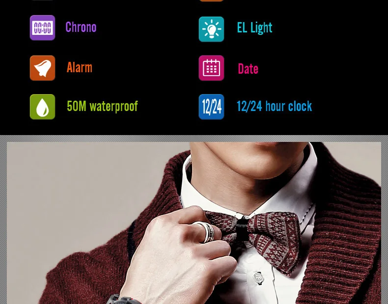 Feature:Shock Resistant,Stop Watch,LED display,Week Display,Water Resistant,Back Light,Chronograph,Multiple Time Zone,Swim,Alarm