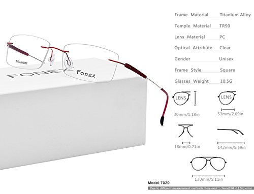 FONEX Rimless Screwless Glasses Frame for Men Women Titanium Alloy TR90 7020