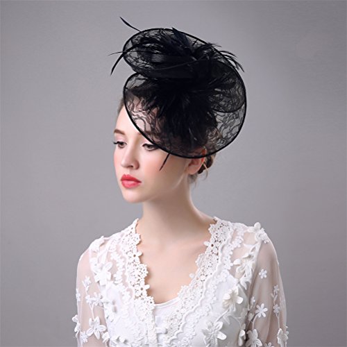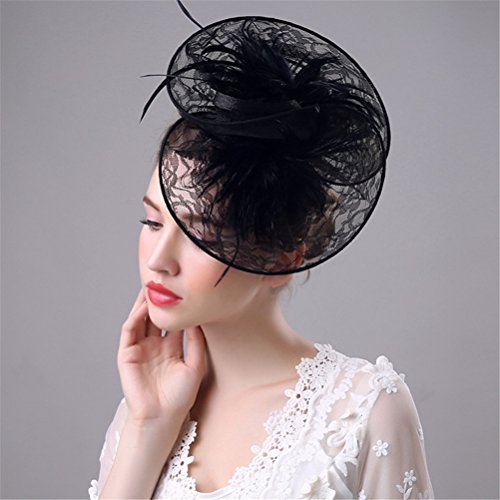 (Arsmt)/Accessories/Hats/DIRECT FROM USA/Arsmt Hair Clip Ostrich Bride Gauze Feather Cap Mesh Wedding Dress Church Derby Hat