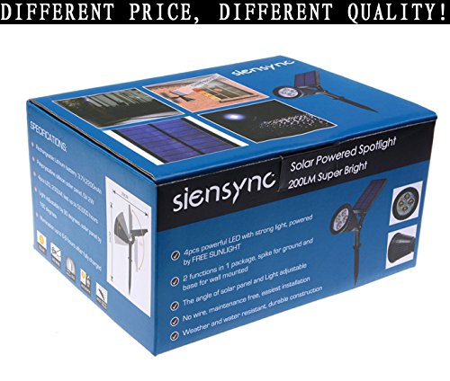 Solar LED Lights - (2 Pack) [3rd Generation] Siensync(TM) 2-in-1 Solar Powered Outdoor Spotlight (Warm White LEDs) for Landscape Lighting Waterproof Wall Light Bulb Driveway Yard Lawn Pathway Garden