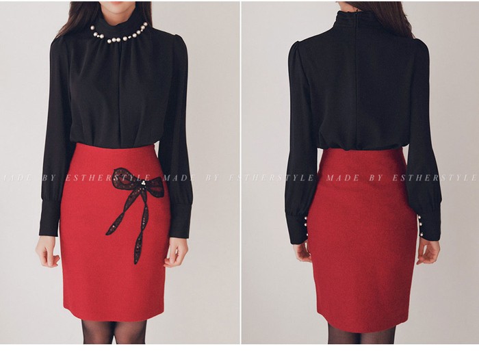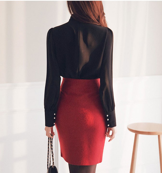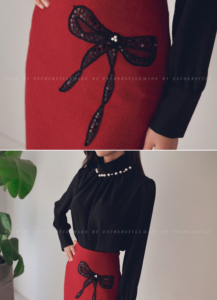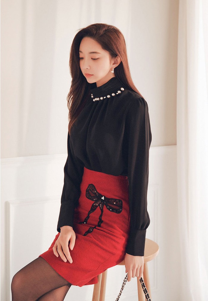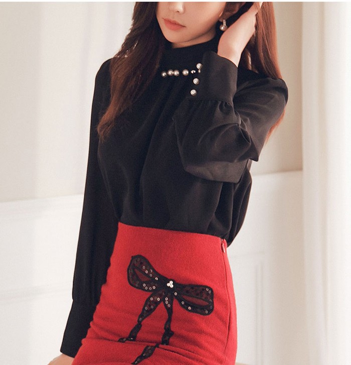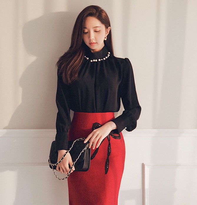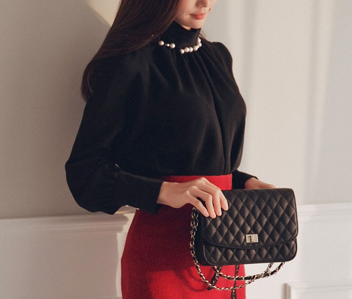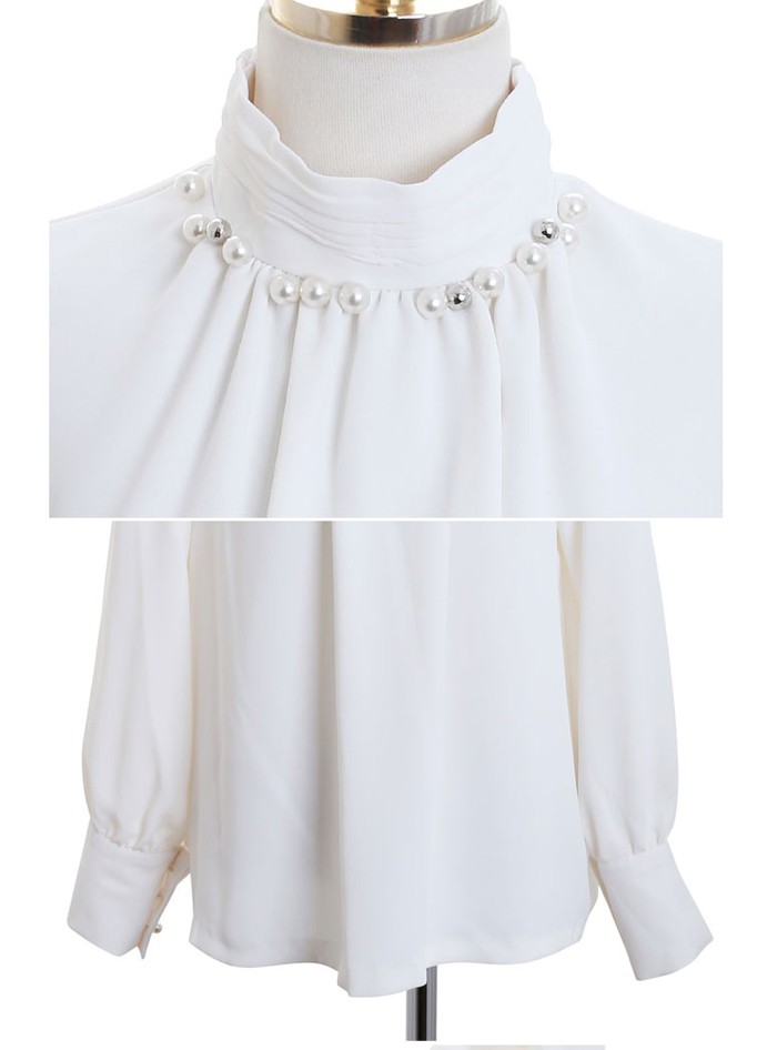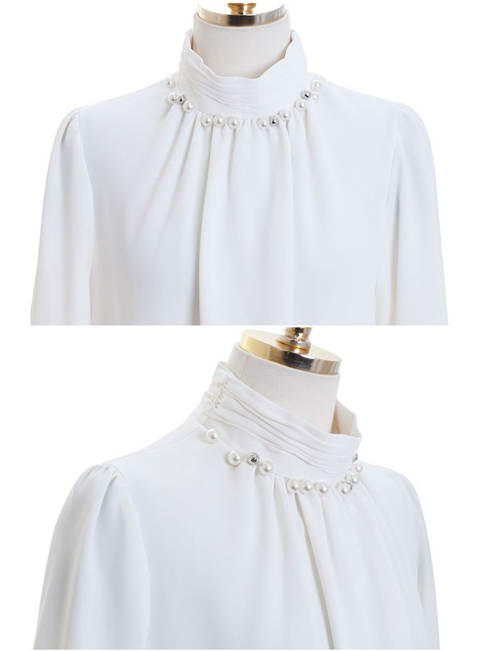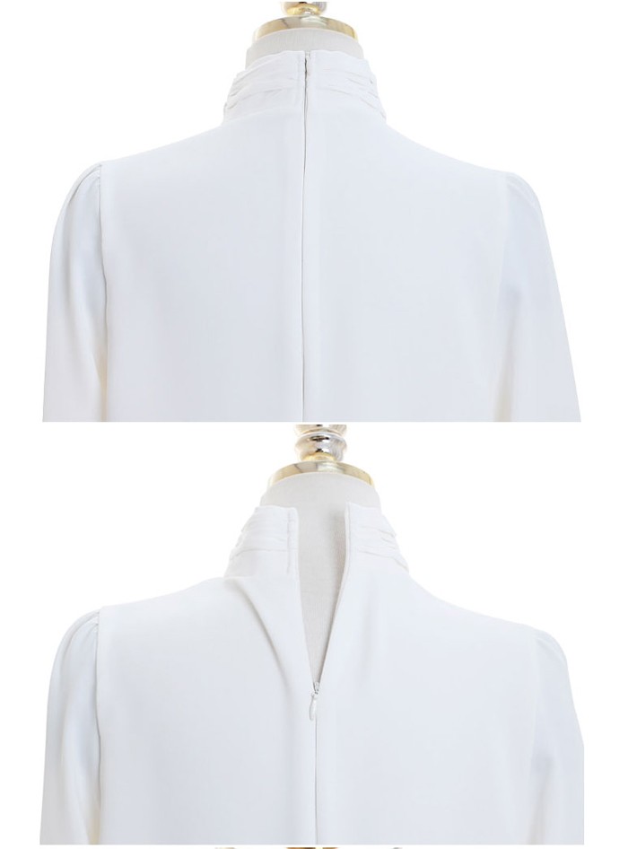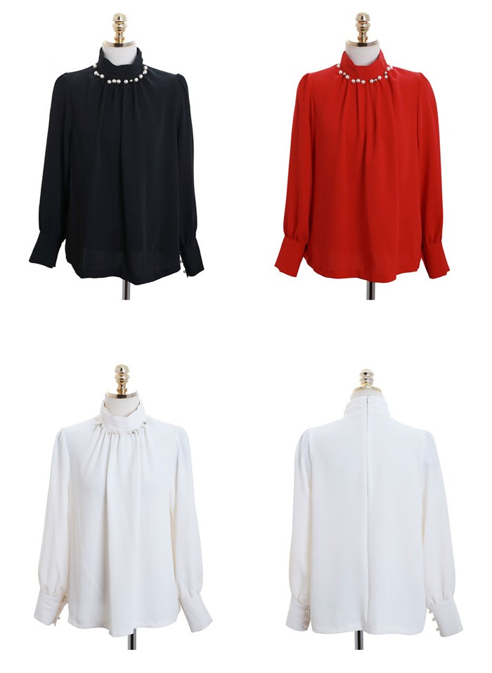 商品名:ブラウス プルオーバー 無地 長袖 ハイネック きれいめ 通勤