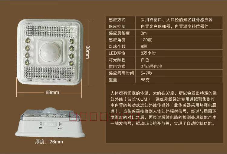 Which sensor lights, induction interval time is zero, into a continuous automatic delay, people in the activities of the light has been bright, people go light is extinguished, humane and easy to use greatly improved.