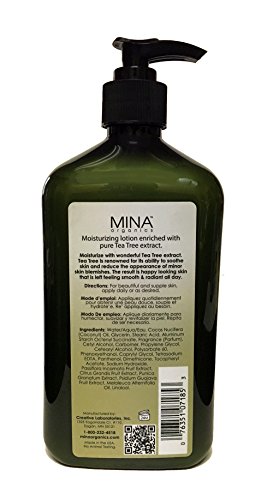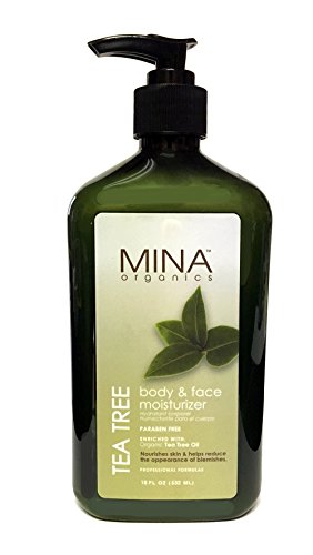 -. Binding : Misc. -. Brand : Mina -. EAN : 0076351071853 -. Feature : Moisturize with wonderful Tea Tree extract. Tea Tree is renowned for its ability to soothe skin and reduce the appearance of minor skin blemishes. The result is happy looking skin that is left feeling smooth & radiant all day. -. IsAdultProduct : 0 -. Label : Mina -. Manufacturer : Mina -. Model : 0407185 -. MPN : 0407185 -. PackageQuantity : 1 -. PartNumber : 0407185 -. ProductGroup : Beauty -. ProductTypeName : BEAUTY -. Publisher : Mina -. Studio : Mina -. Title : Mina Organics Tea Tree Body and Face Moisturizer 18oz - Factory Authenticity Code -. UPC : 076351071853