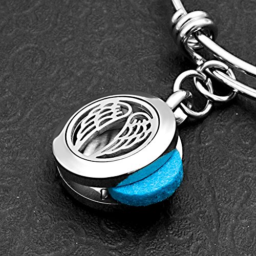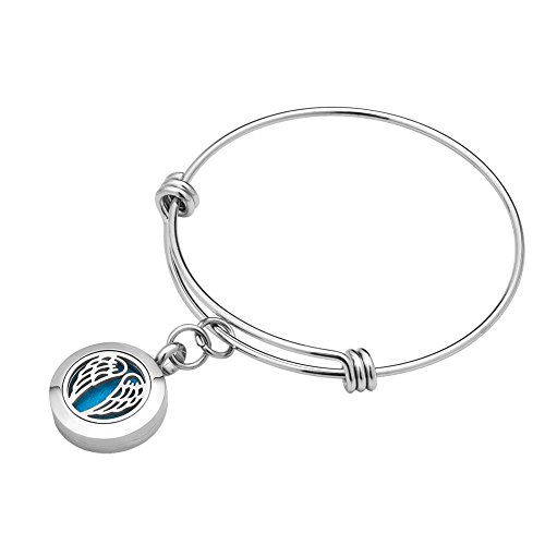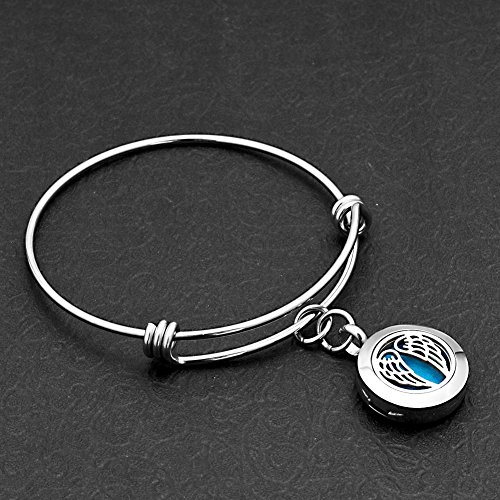 Third Time Charm Aromatherapy Essential Oil Diffuser Angel Wing Locket Bracelet Stainless Steel Bangle Bracelets Jewelry, 10 Refill Pads