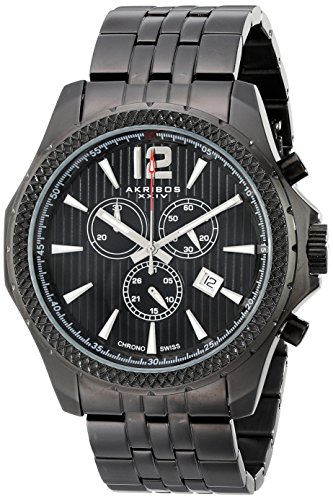 -. Title : Akribos XXIV Men's AK662BK Ultimate Swiss Quartz Chronograph Black Stainless Steel Bracelet Watch