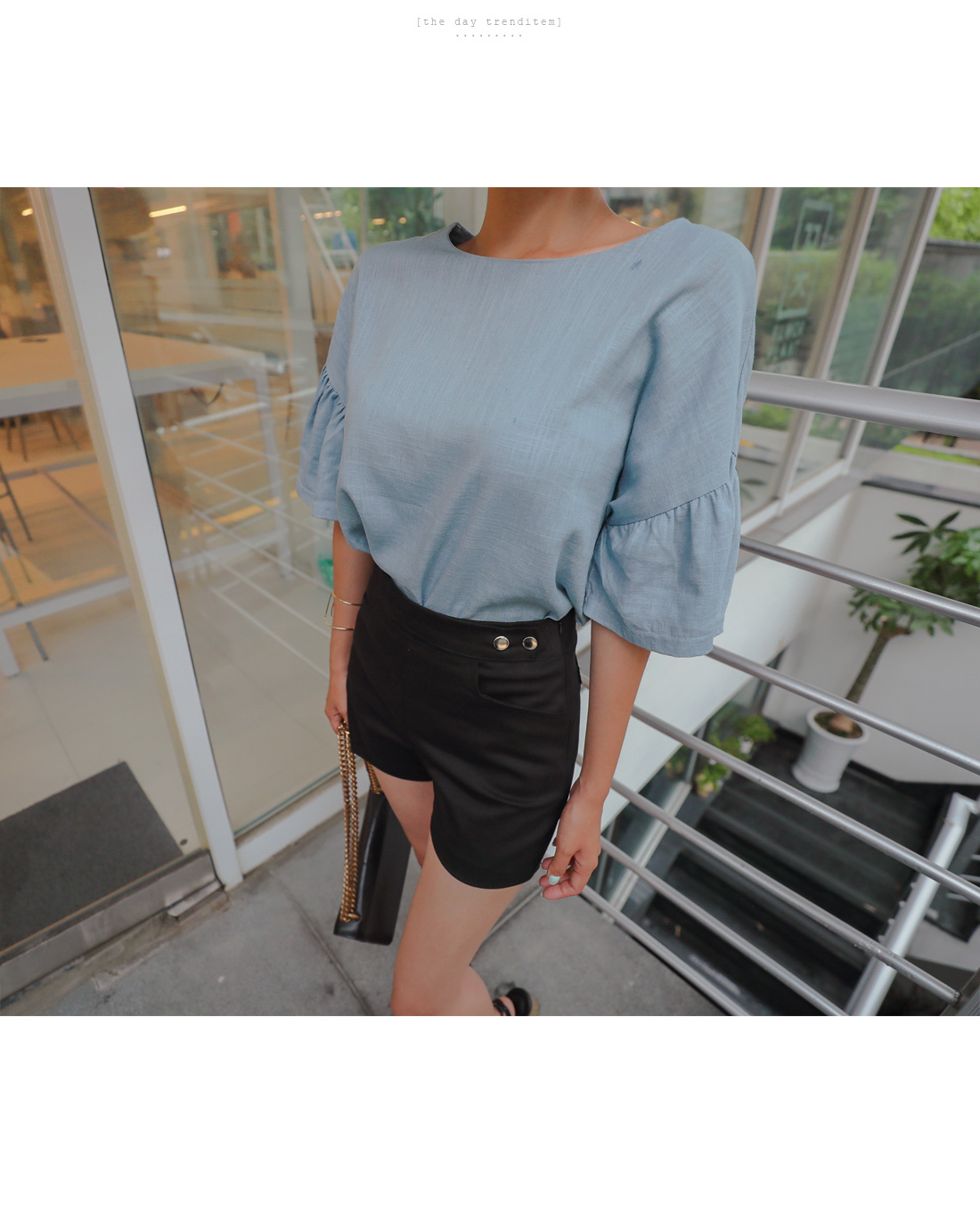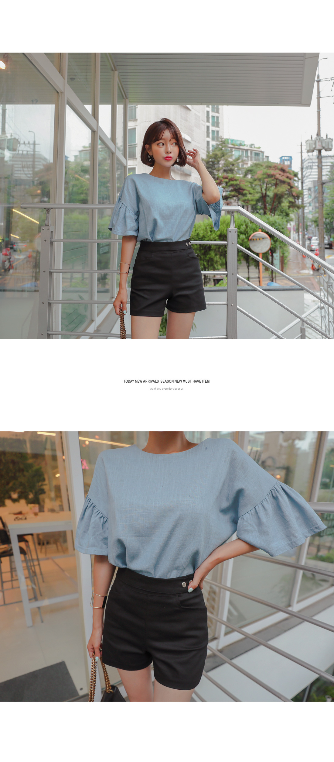 여성스러운 분위기의 셔링소매 블라우스를 소개할게요.