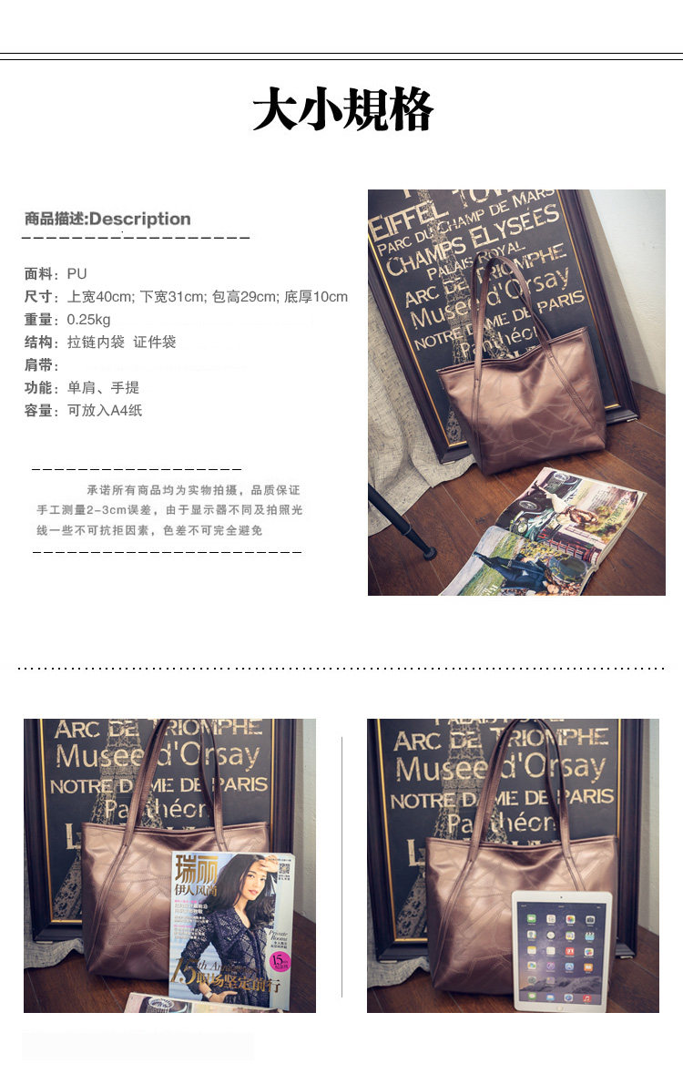 原创新款拼接女包大包包韩版潮防水爆裂纹包休闲单肩包手提包