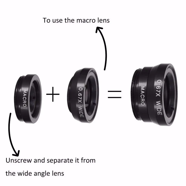 The macro and wide lens a are together, please put the two lens on the clip, then unscrew it clockwise, then you could get the third lens
