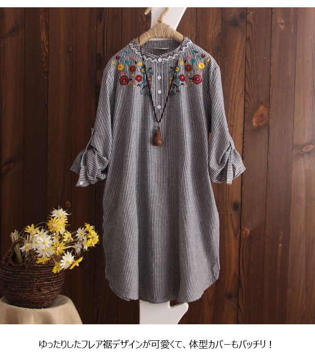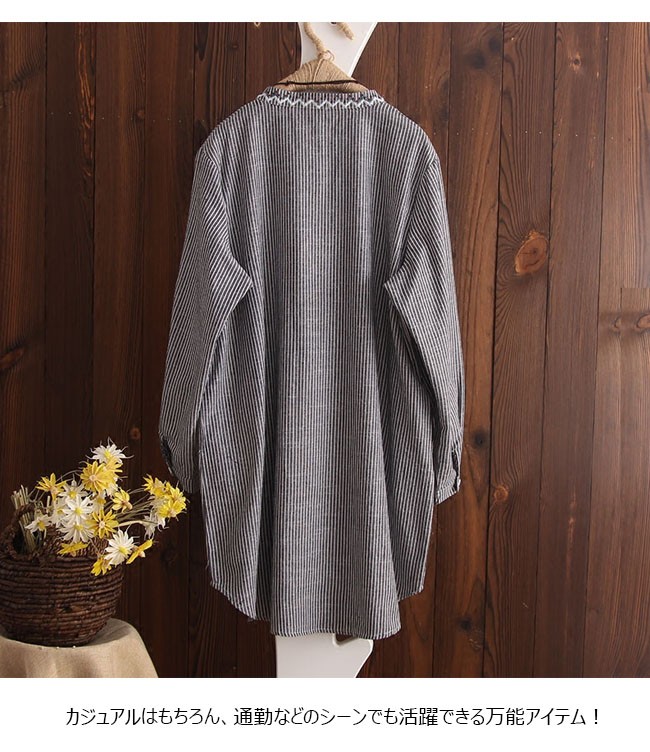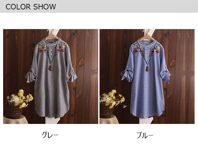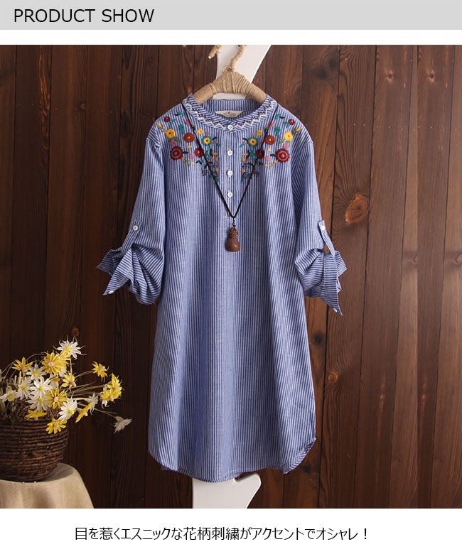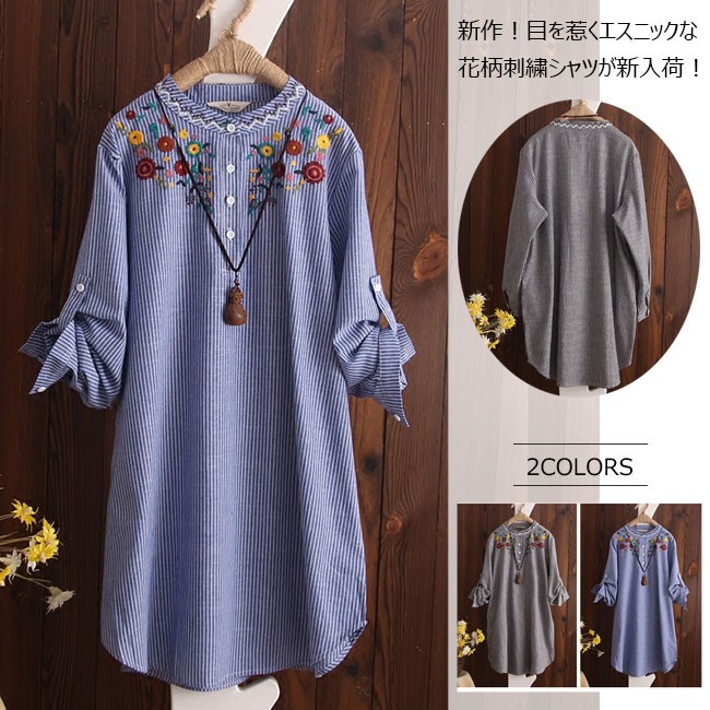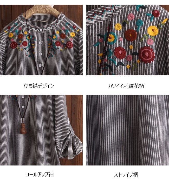 | 商品名 | 刺繍シャツ 刺繍ブラウス リネンシャツ 棉麻シャツ レディース トップス 長袖 スタンドカラー エスニック ロールアップ 夏 秋 |