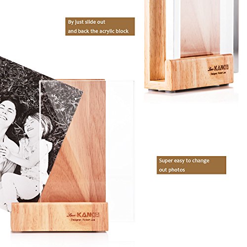 4×6 Picture Frame by Love-KANKEI, Super Clear Acrylic & Solid Wood Photo Display Stand for Desk, Vertical