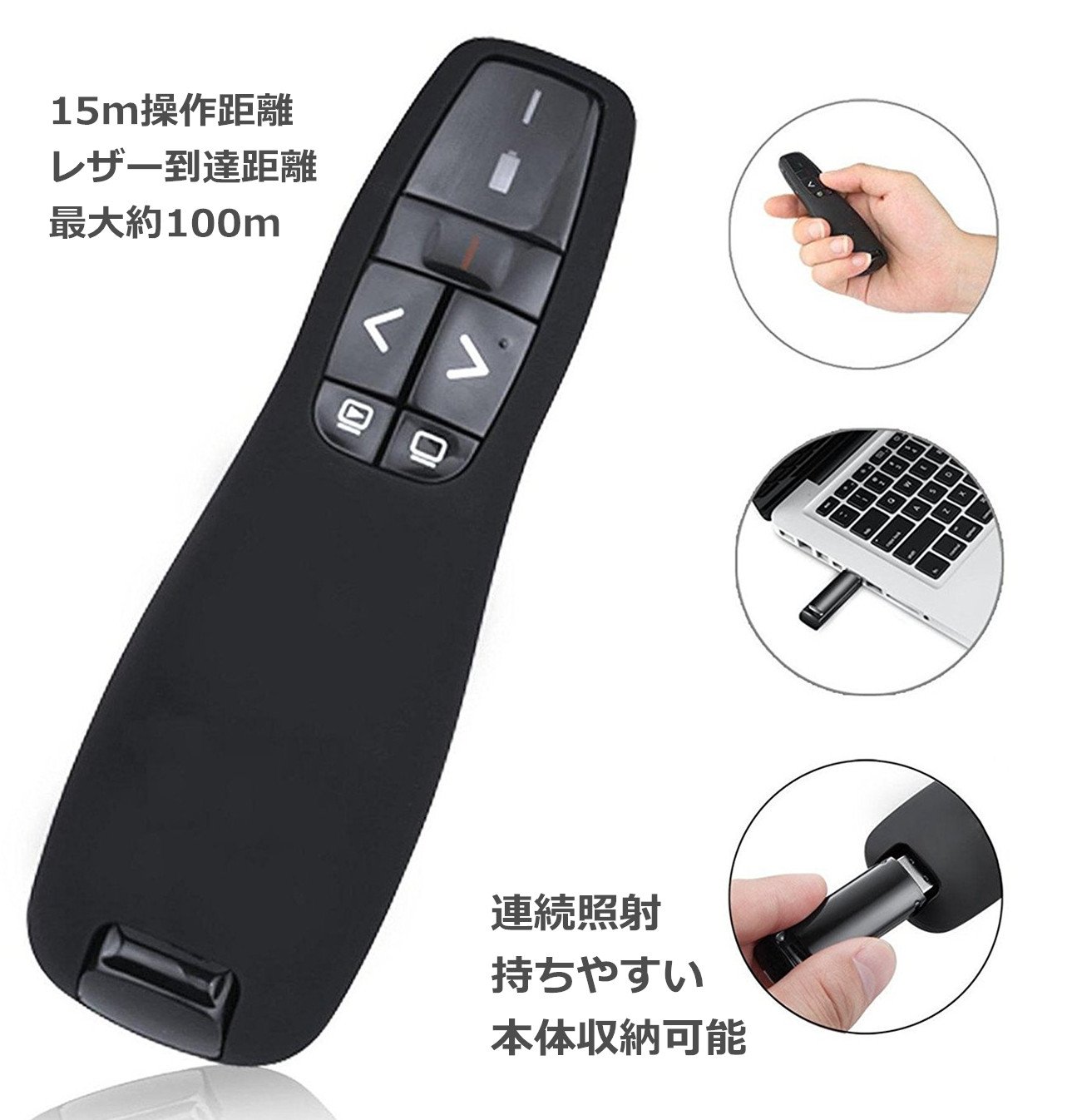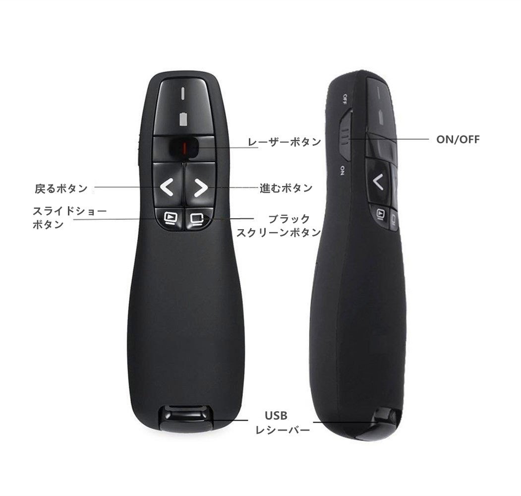 Red laser pointer button forward / back button black screen button (some applications) slide show button