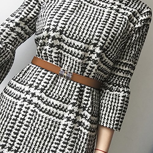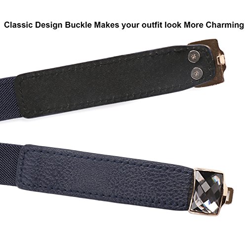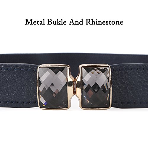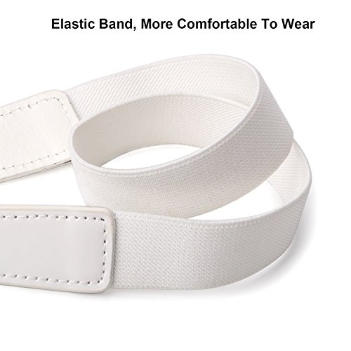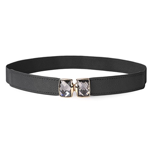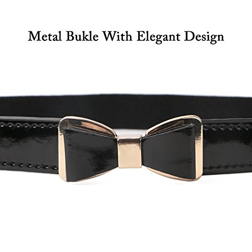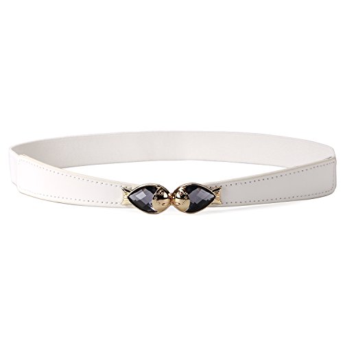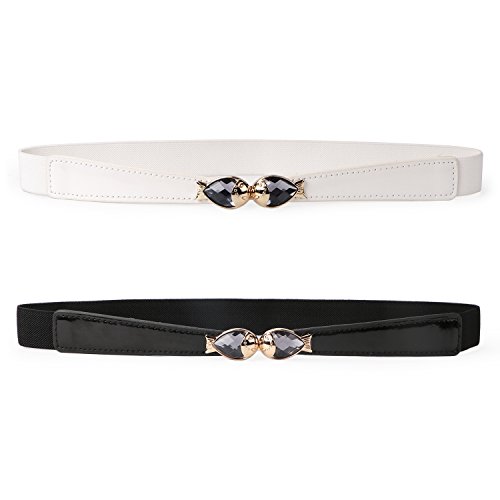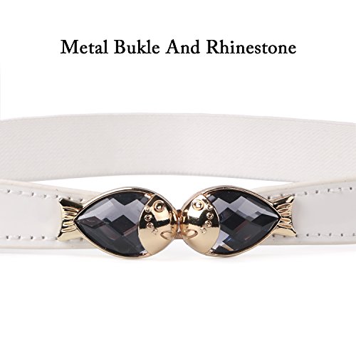 ABOUT THE BELT The skinny elastic belt was made of Leather, elastic band and zinc alloy buckle, the best material provide the best feeling for you. This elastic belt is a great match for any fashion style in any seasons. The elasticized cinch belt fastens with a metal hook buckle and great fit with Jeans, T-Shirts, Slacks, Skirts, Pants.