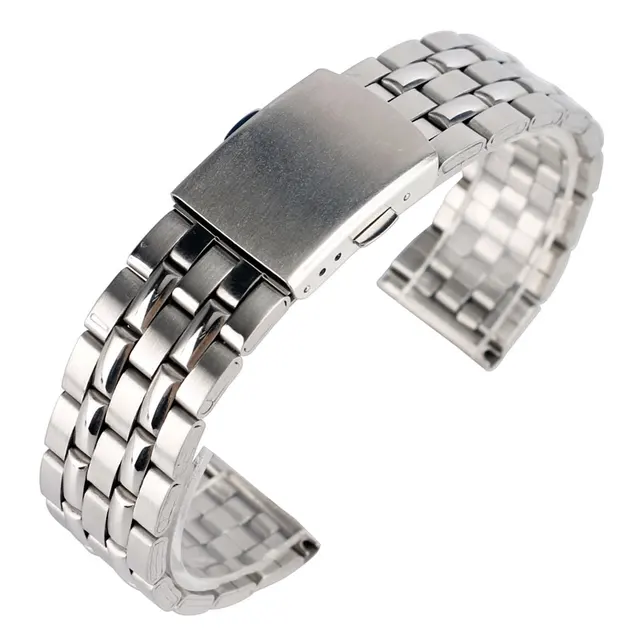 18 미리메터 20 미리메터 실버 솔리드 스테인레스 스틸 시계 줄 남성 여성 패션 손목 시계 밴드 교체 + 2 봄 바