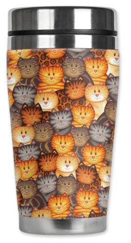 Mugzie Cat Faces Travel Mug with Insulated Wetsuit Cover, 16 oz, Black