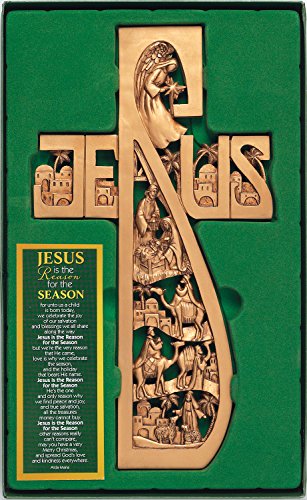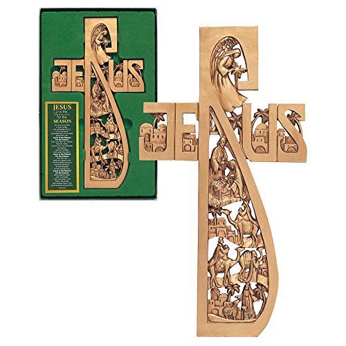 Jesus Nativity Cross Antique Wood Tone 6 x 11.5 Resin Stone Christmas Wall Sign Plaque