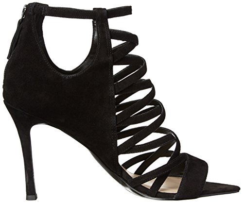 Cage-style sandal featuring crisscross straps over vamp and rear zipper entry