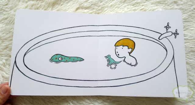 Imagine a real dinosaur in his tub