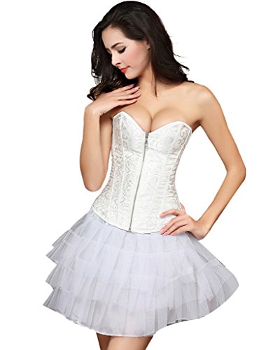 Binding : Apparel Product Description Features: 1. Zipper up overbust fashion bridal bustier design corset. 2. This corset top is made of high quality satin and strong steel boning. 3. This satin underbust corset is good for waist training. It can help you shape your waist, make your curves look more fascinating and charming. 4. Perfect for wearing with wedding dress or as a shapewear corset, showing it off for some cosplay or other special occasions.