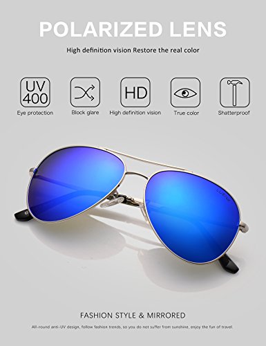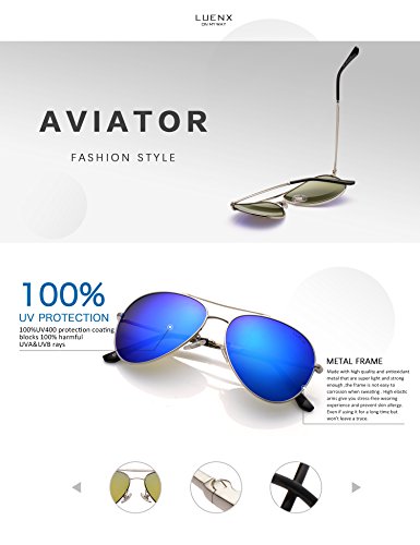 LUENX Aviator Sunglasses Men Women Mirror Polarized UV400 Metal Frame 60MM (6-Dark Blue, 60)