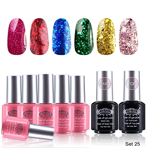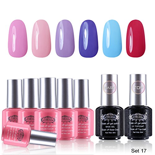 Package Included: 6 x colors gel polish; 1 x base coat; 1 x top coat ---- Capacity: 8ml/bottle