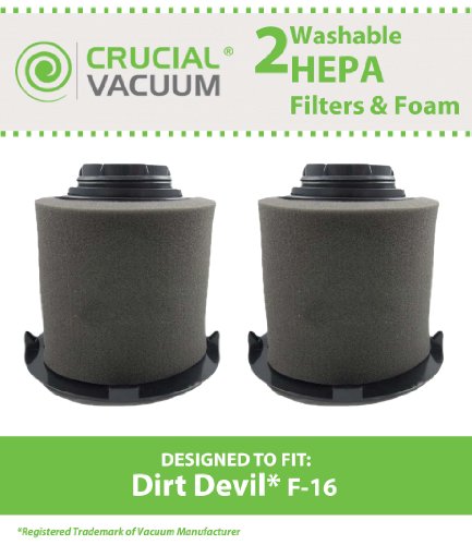 2 Dirt Devil F16 Filter Kits w/ HEPA Filter & Foam Pre-filter; Compare to Dirt Devil Part Nos. 1JW1100000, 2JW1000000; Designed & Engineered by Think Crucial