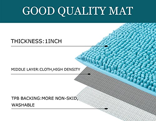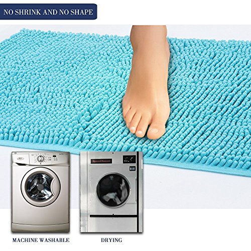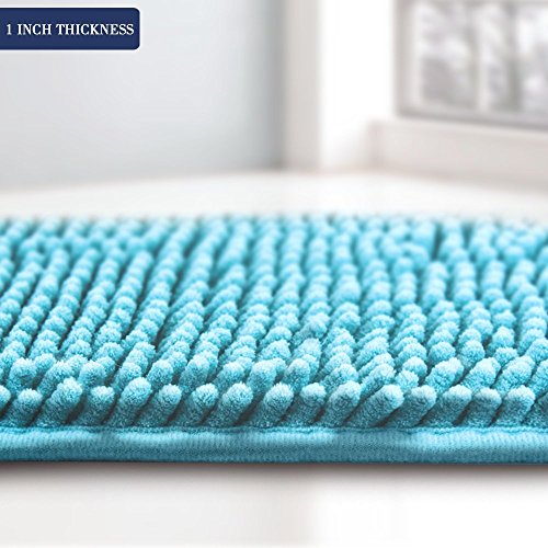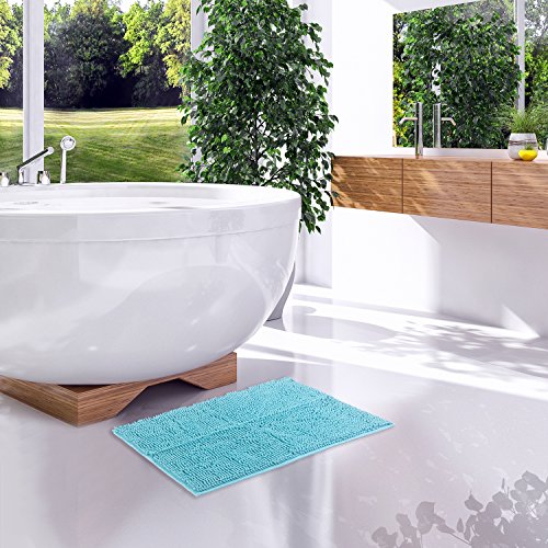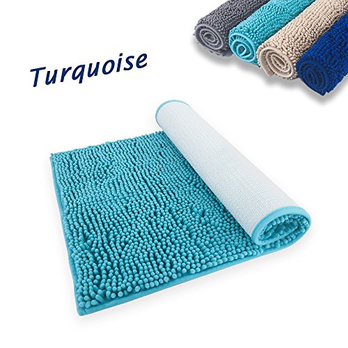 MBIGM Non-Slip Bathroom Rug 20 x 32 Inches Microfiber Shag Machine Washable Mat with Durable TPR Backing (20"x 32", Turquoise)