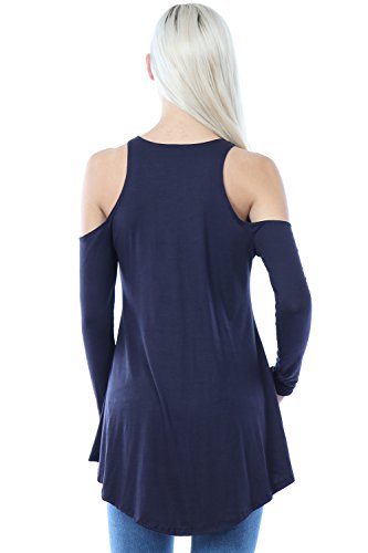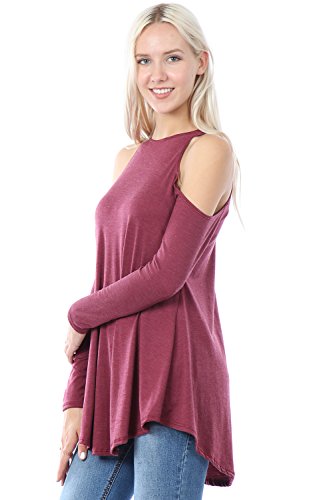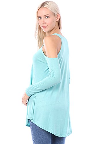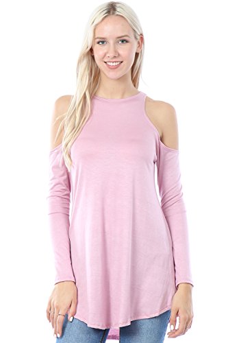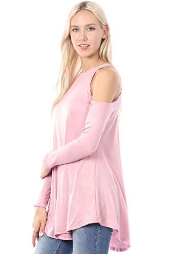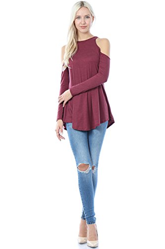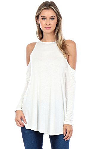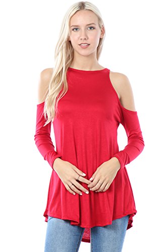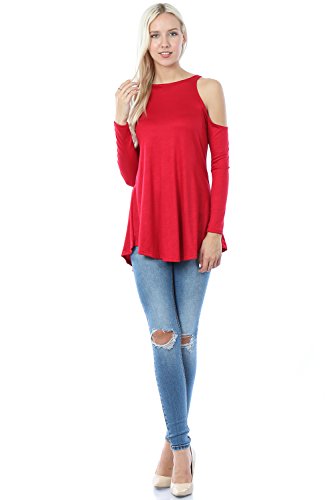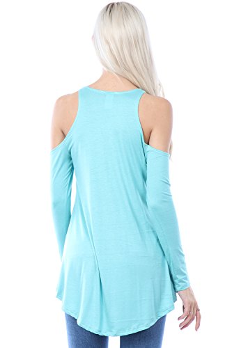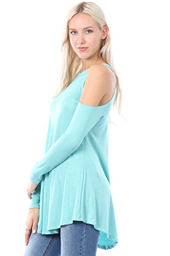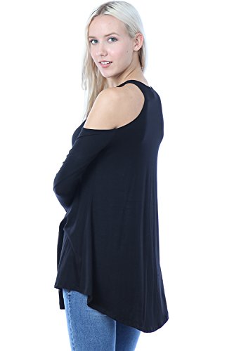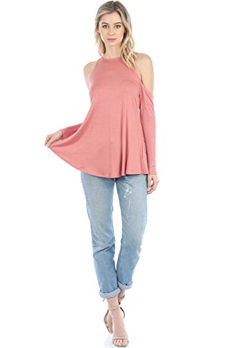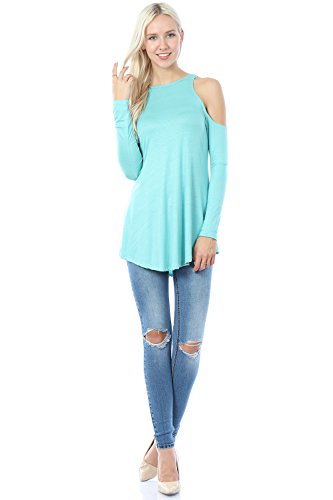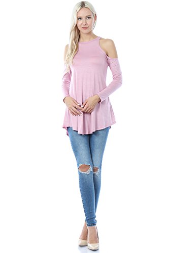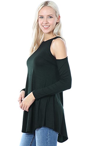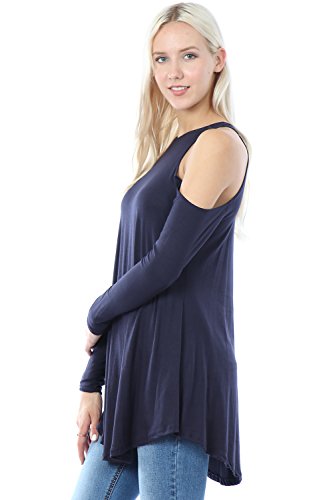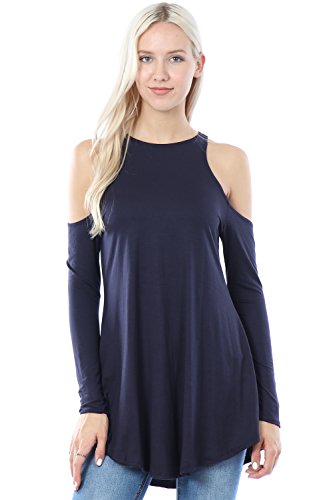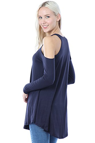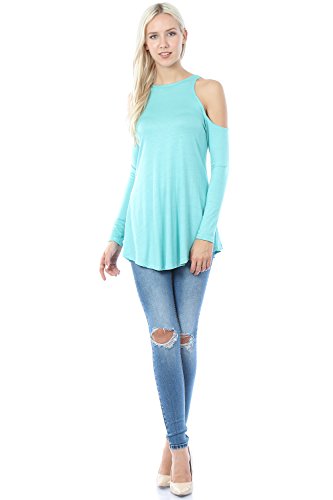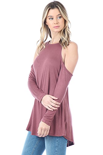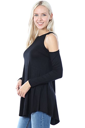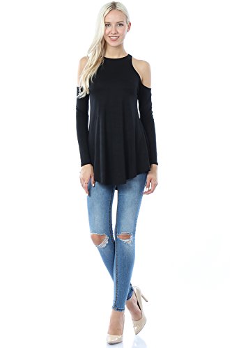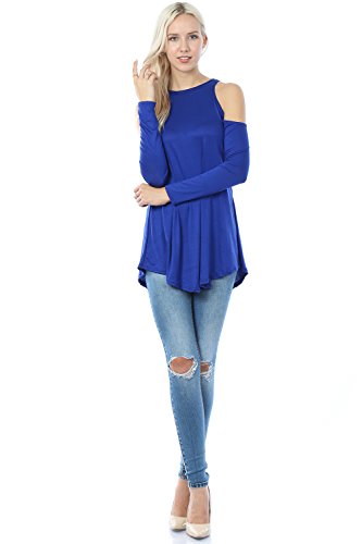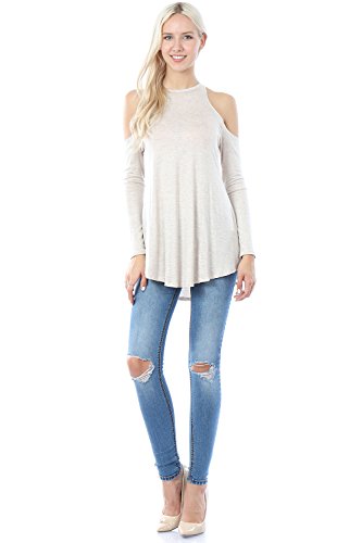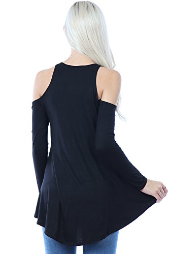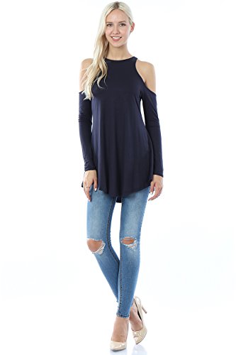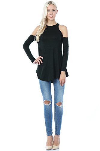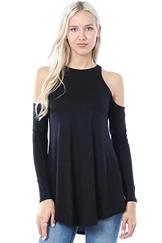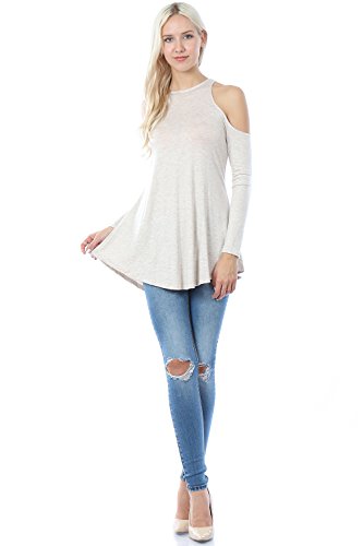 | Made In USA High Neck Cold Shoulder Long Sleeves Relaxed Fit Flare Tunic Top |